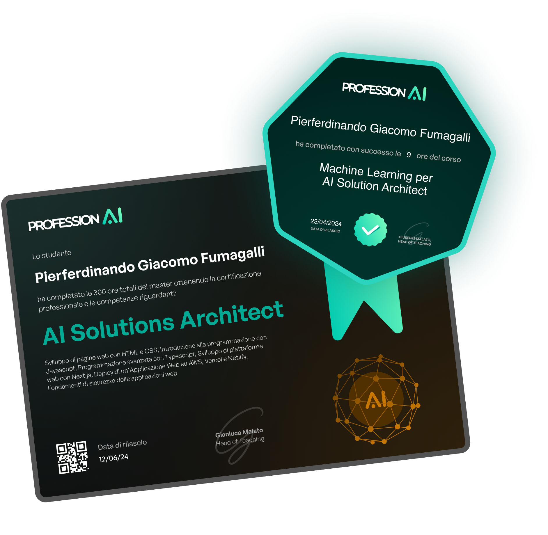 No, ne rilasciamo 12! Infatti ogni corso del percorso ha un suo attestato di completamento. Al termine del nostro Master Professionale poi, è possibile sostenere un esame online per ottenere la Certificazione delle Competenze valida in tutto il territorio Europeo. Questa certificazione, riconosciuta dallo Stato Italiano con valore pubblico e legale, può essere rilasciata esclusivamente da enti accreditati per conto della Regione Lombardia, all'interno del Quadro Regionale degli Standard Professionali (QRSP).
